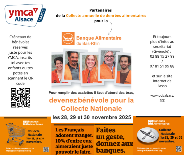 Les YMCA-UCJG Alsace s’associent à la Collecte annuelle de la Banque alimentaire. La Banque alimentaire lutte contre la précarité et le gaspillage alimentaire en France.